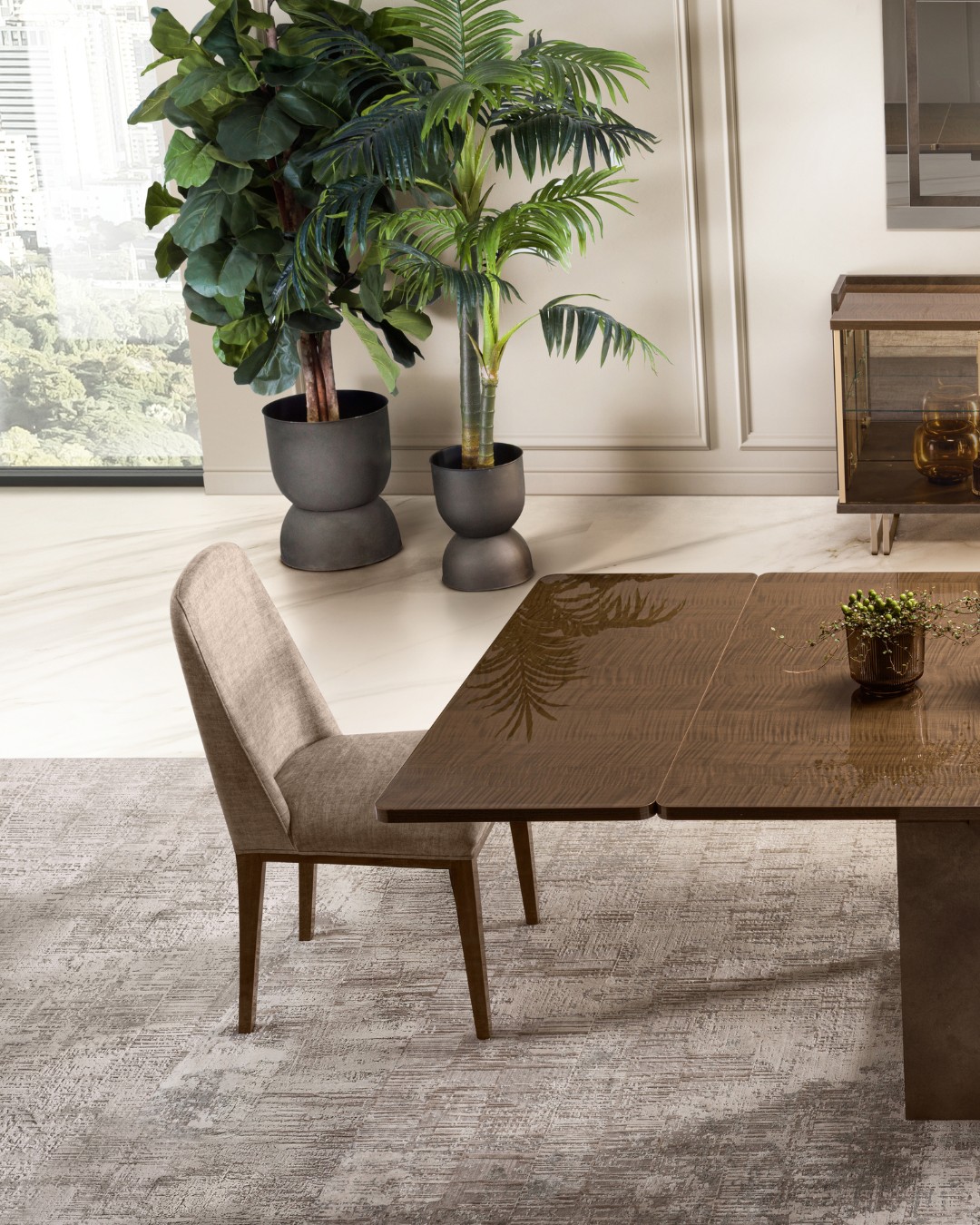 The Fiamma chairs add comfort and warmth to the living area, perfectly in harmony with the design language of the collection.
